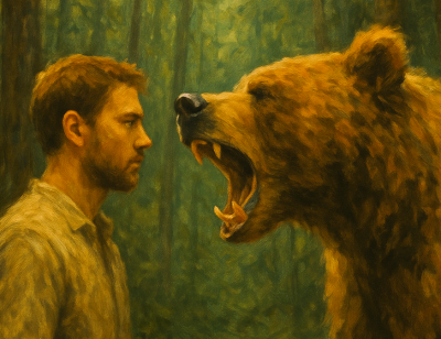 Parable of the Bear and the Koala In a dense forest where the pines whispered secrets to the wind, there lived a bear with a roar that shook the earth. His strength was unmatched, and his presence commanded the respect of all the creatures. When storms raged, the bear stood firm. When dangers loomed, he charged forward.